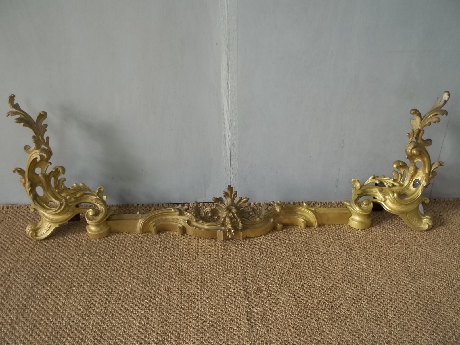 Antique Pair of 19th Century Ormolu Gilt Bronze Rococo Chenets of Fireside Adjustable Fender Form