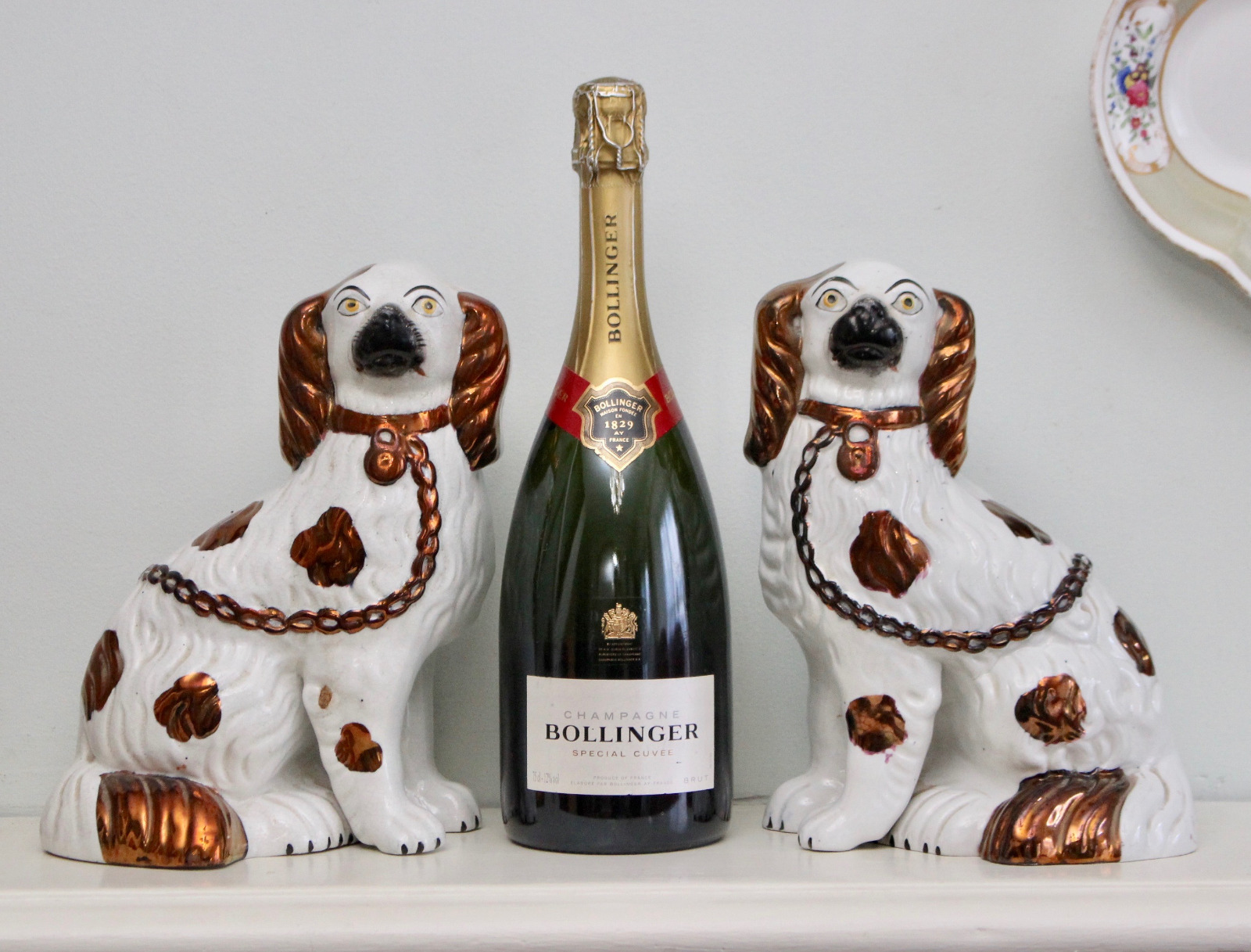 Antique Pair of 19th Century Staffordshire Dogs, Separate Legs, Copper Lustre Glaze, 9.5'