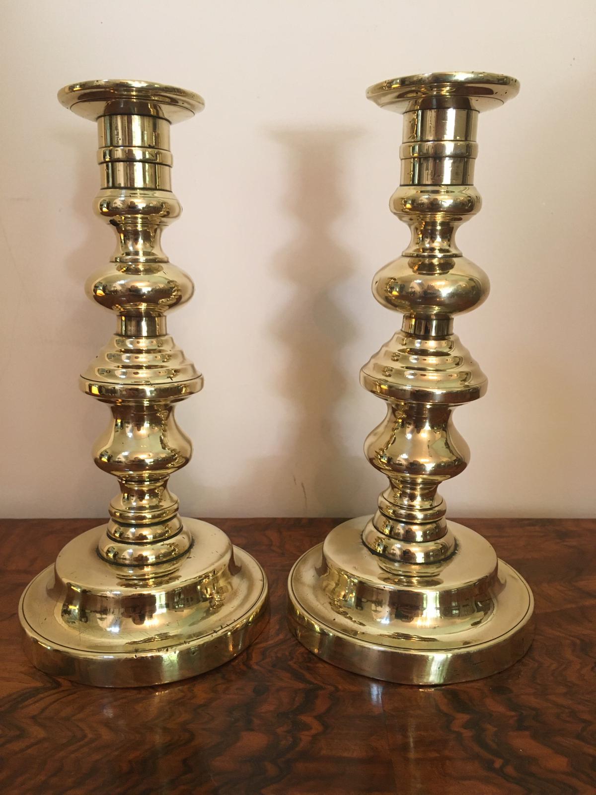Antique Pair of Brass Candlesticks c.1820 (1 of 5)