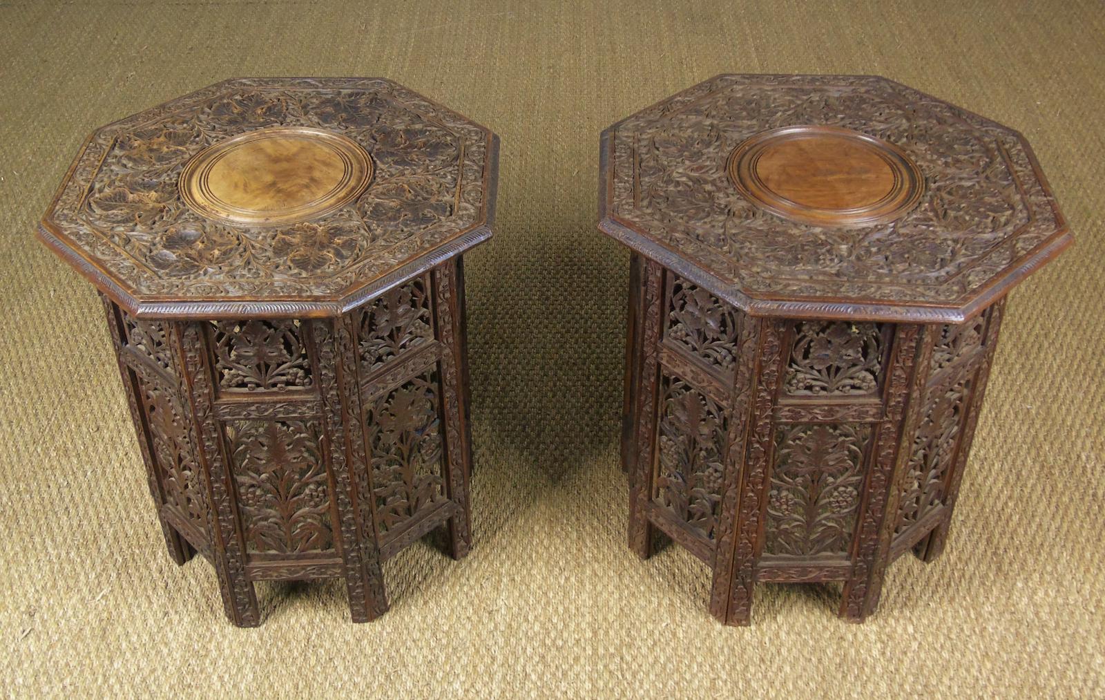 Antique Pair of Carved Hardwood Islamic Tables Moorish Liberty