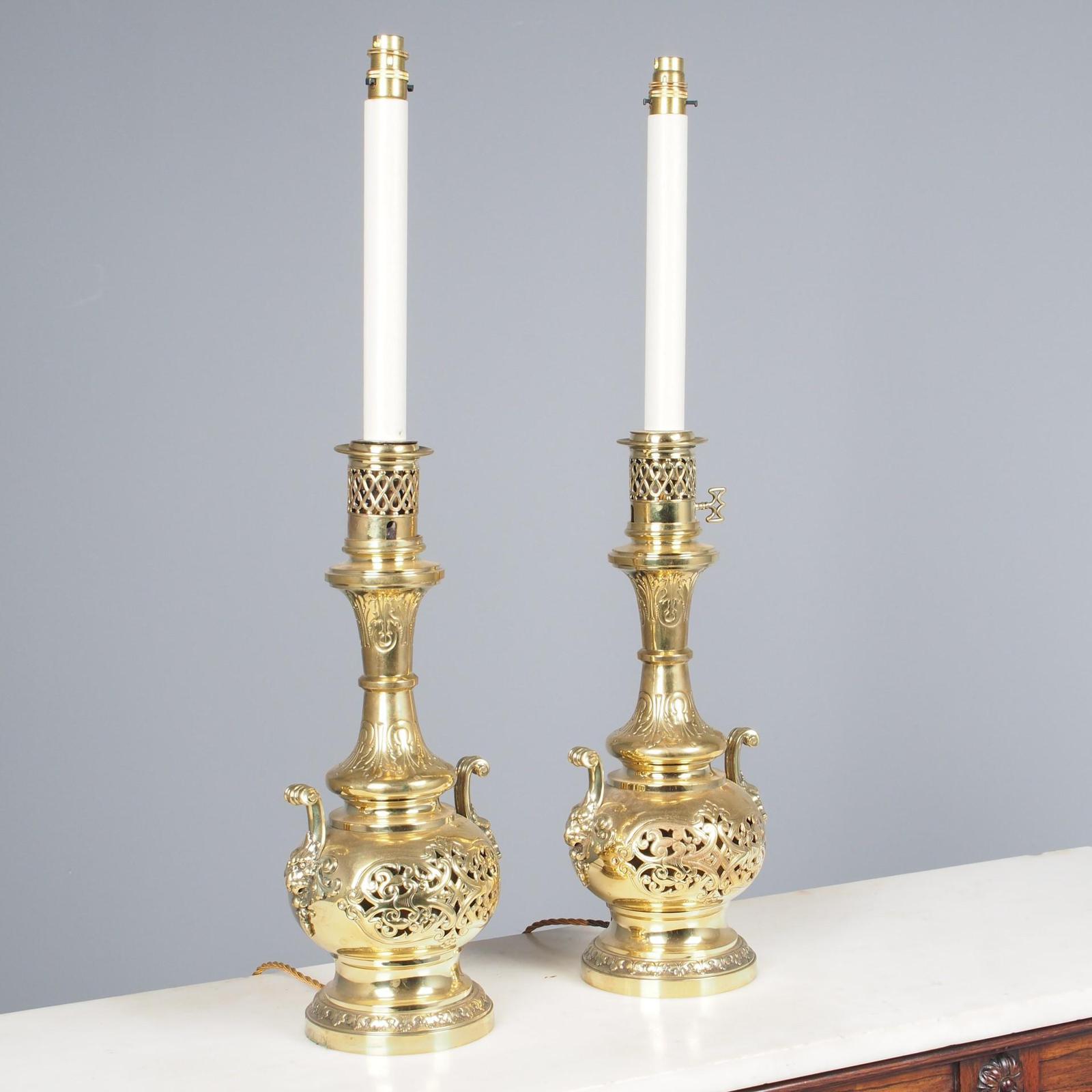 Antique Pair of Cast Brass Persian Style Lamps (1 of 19)