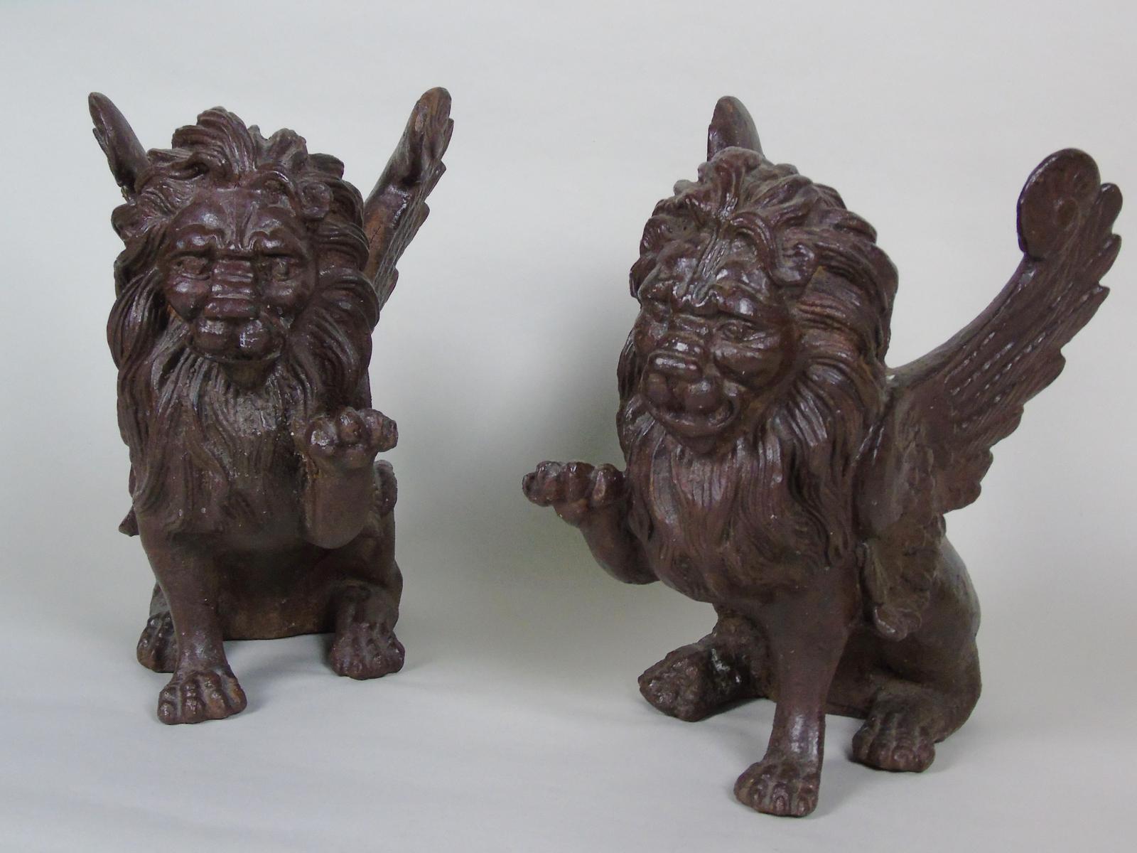 Antique Pair of Cast Iron Winged Lions (1 of 9)