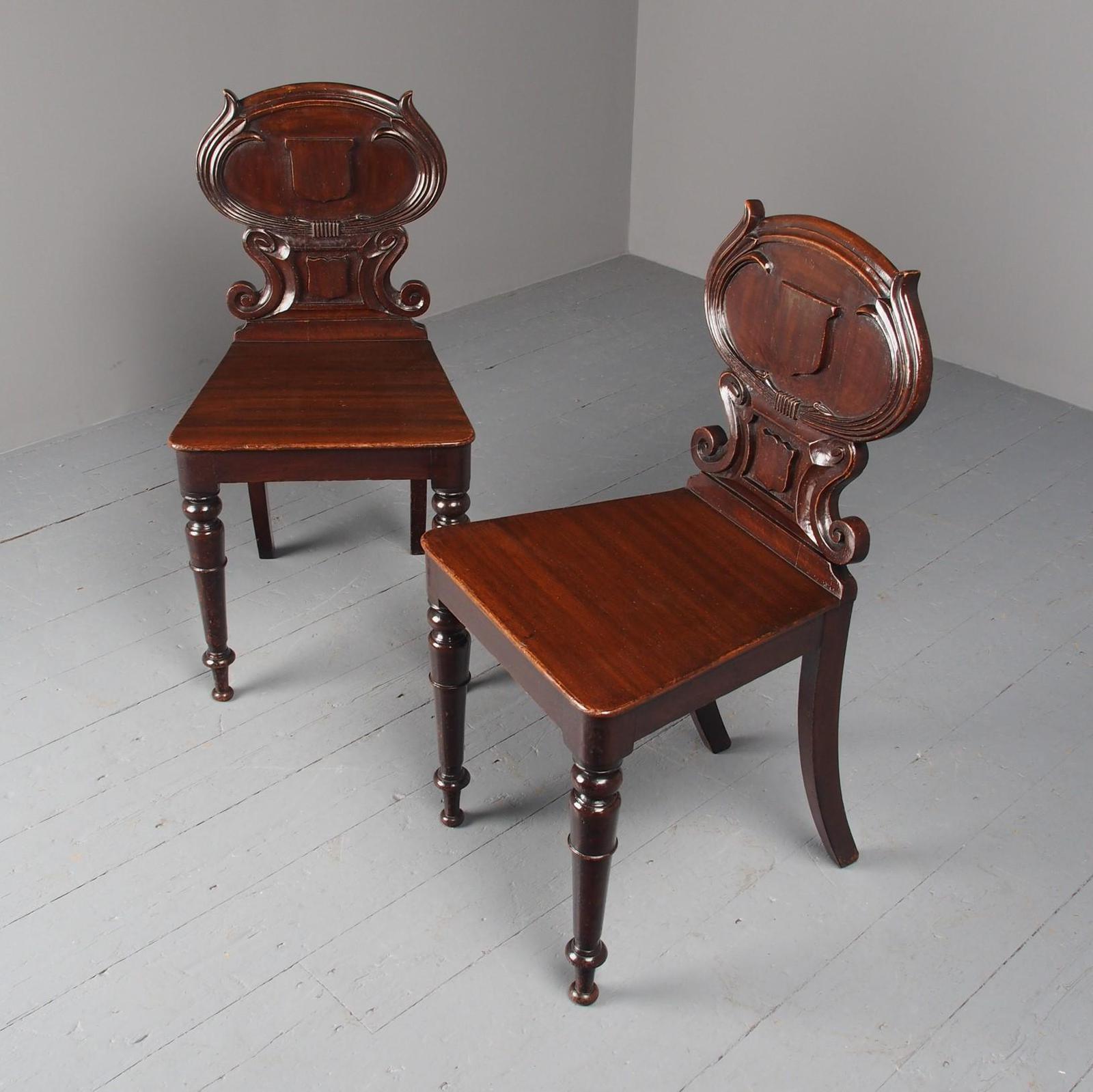Antique Pair of Dark Oak Hall Chairs (1 of 11)