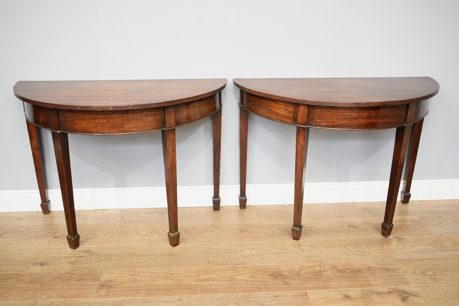 Antique Pair of English Georgian Mahogany Demi-Lune Console Hall Tables (1 of 1)