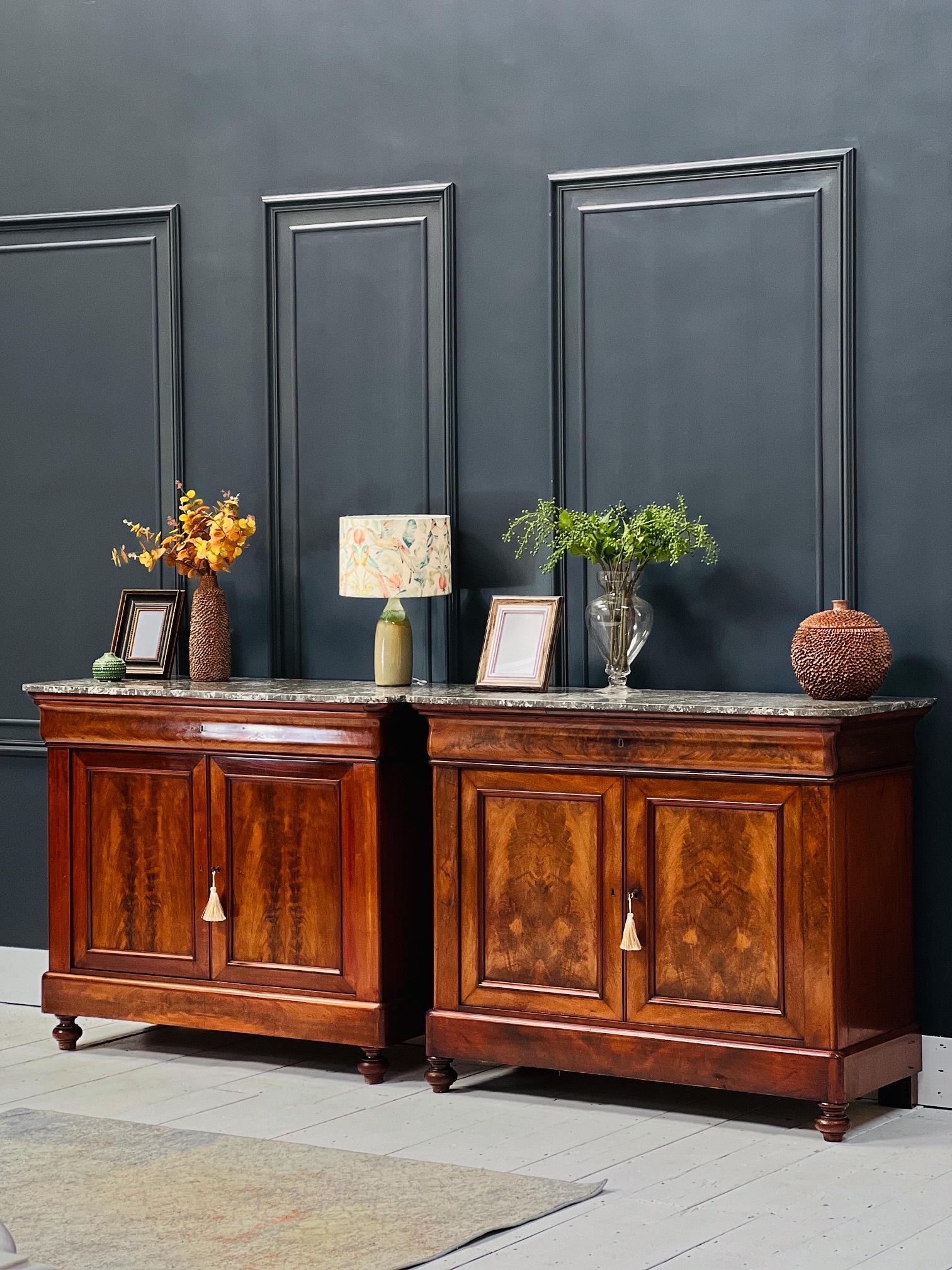 Antique Pair of Flame Mahogany Cabinets / Louis Philippe Cupboards