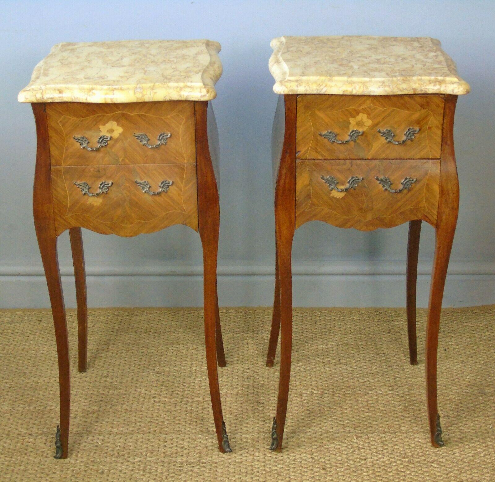 Antique Pair of French Bedside Cabinets Marble Top (1 of 6)