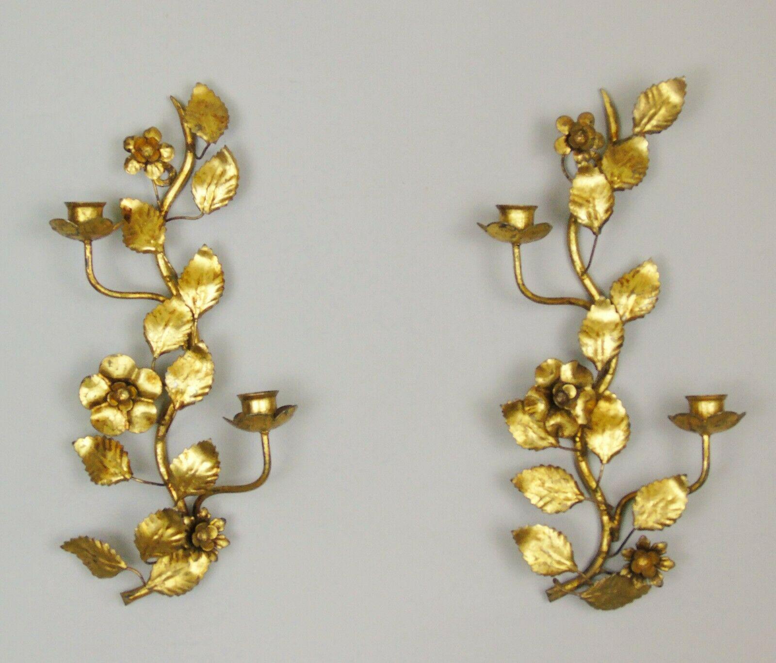 Antique Pair of French Gilt Wall Sconce Rose & Leaf Design