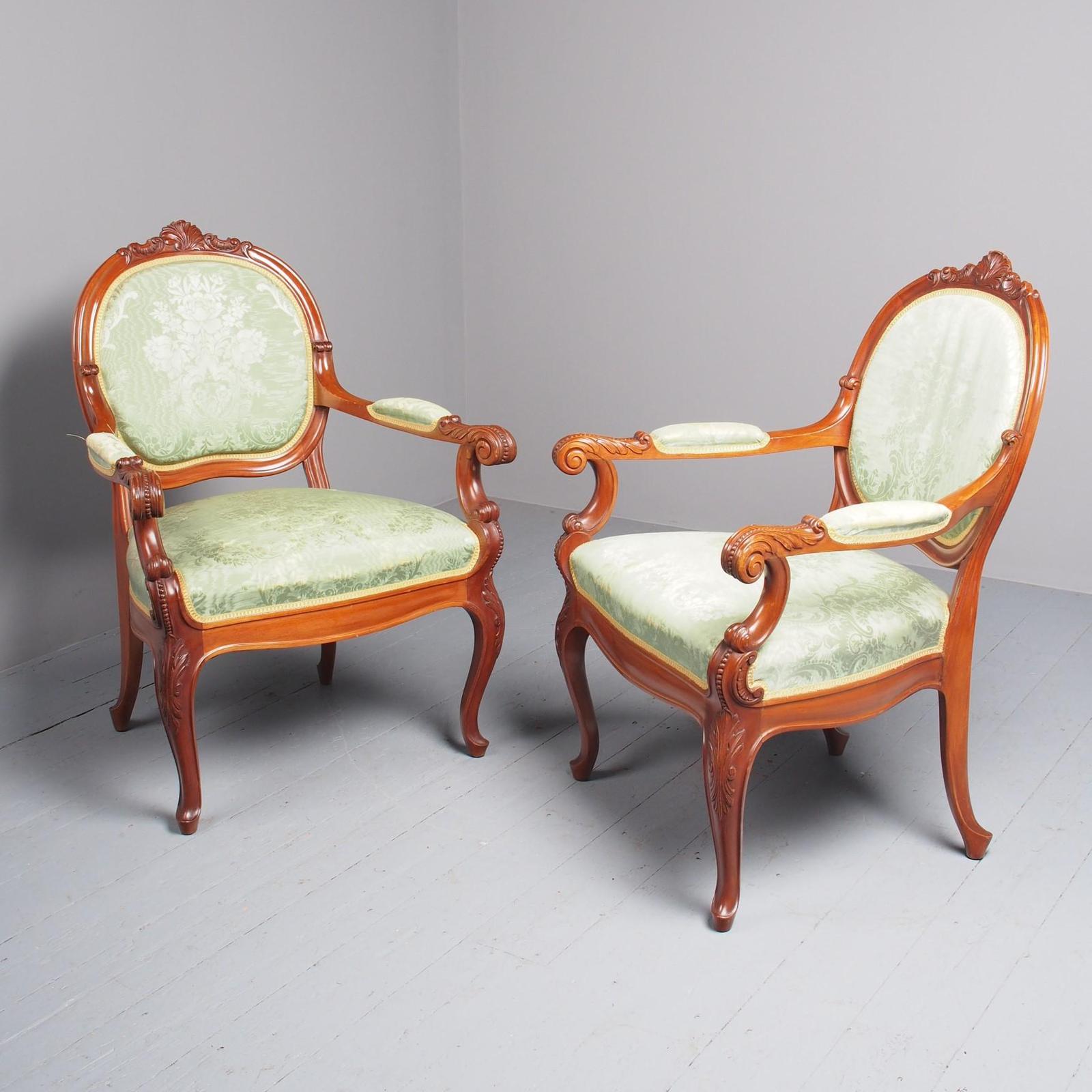 Antique Pair of French Mahogany Salon Chairs (1 of 20)