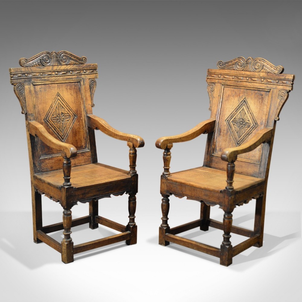Antique Pair of Hall Chairs, 19th Century Baronial