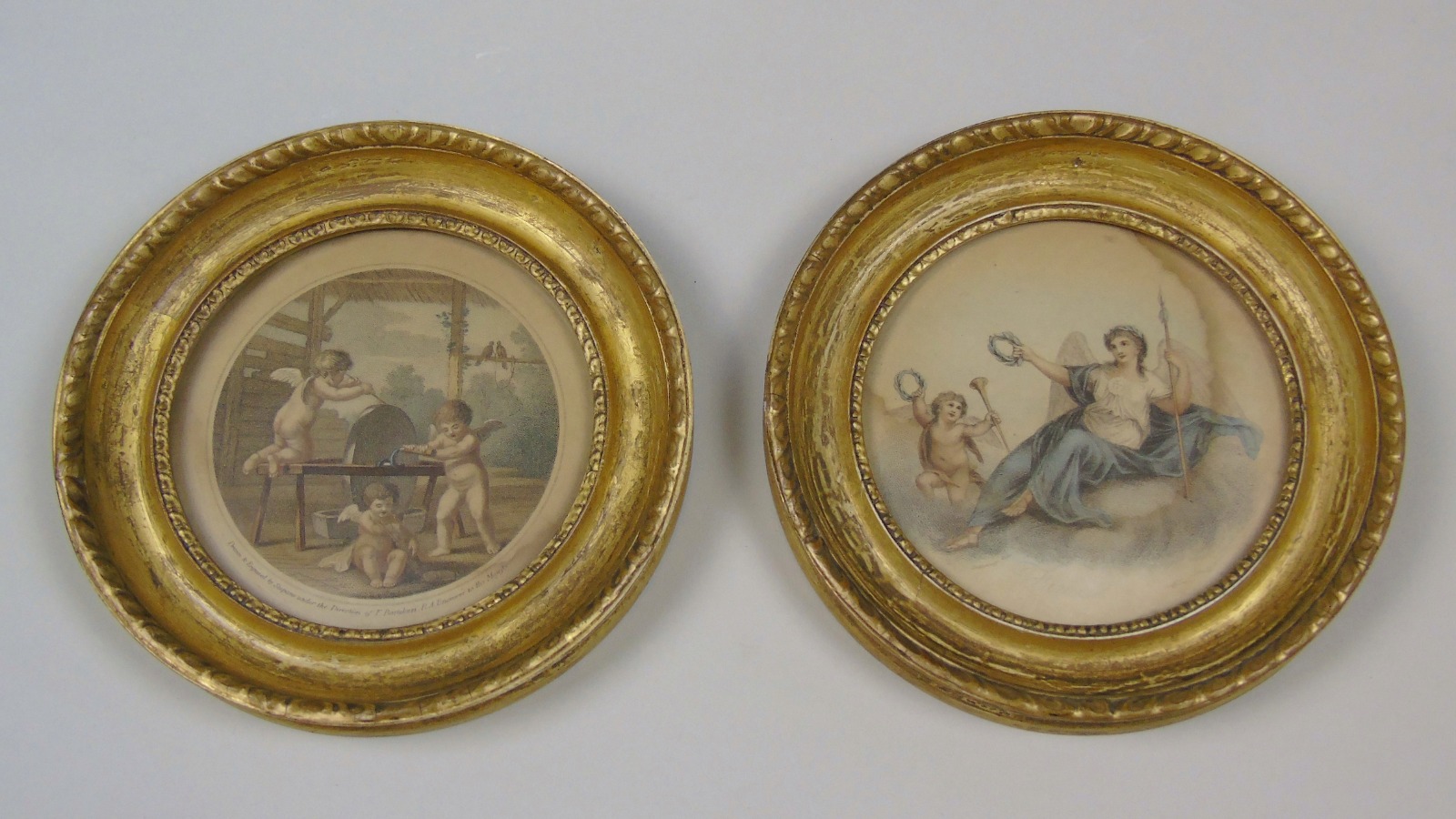 Antique Pair of Hand Coloured Engravings Bartolozzi (1 of 7)