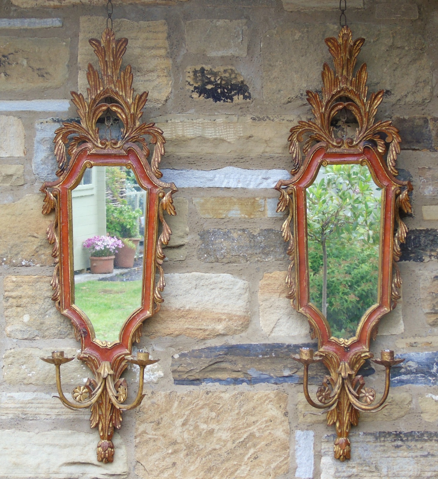 Antique Pair of Italian Giltwood Girandole Mirrors (1 of 7)