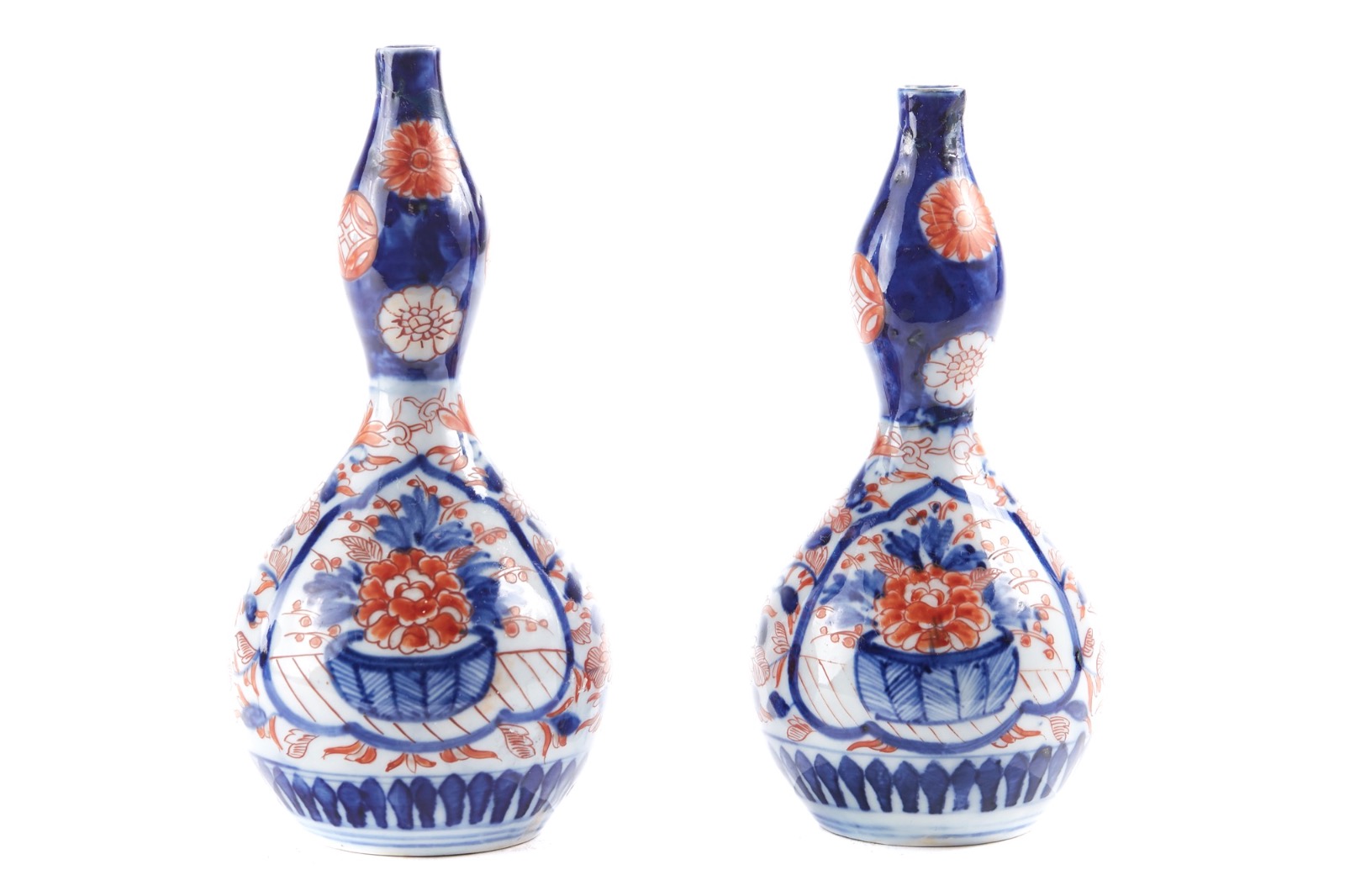 Antique Pair of Japanese Imari Gourd Vases