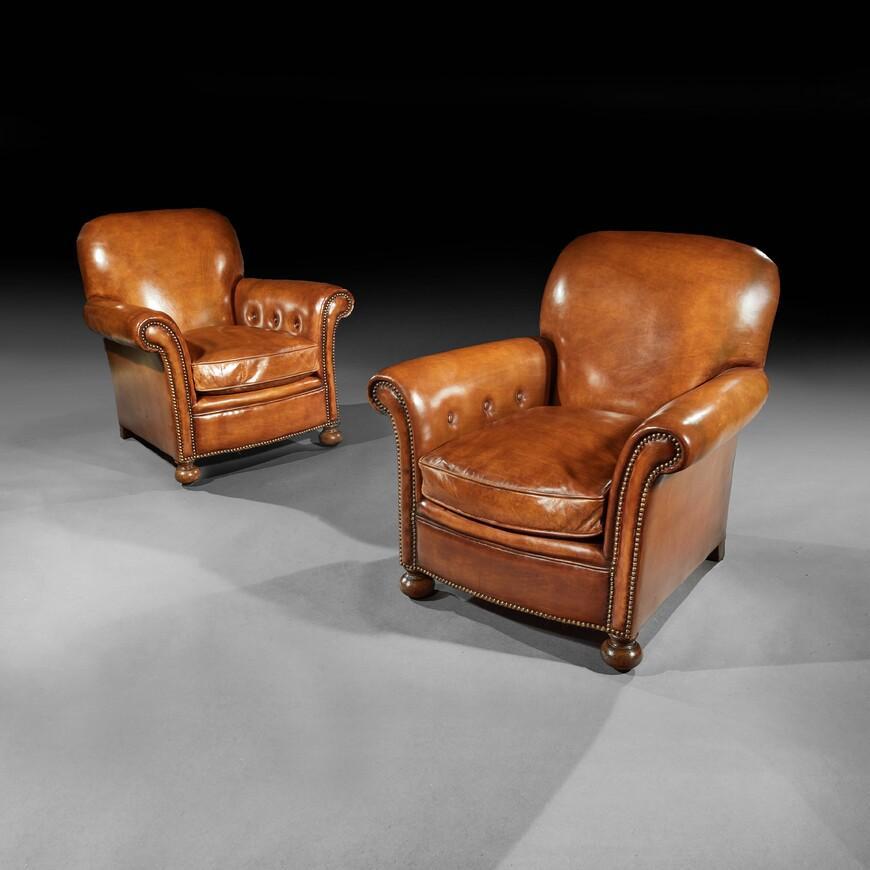 Antique Pair of Leather Upholstered Club Armchairs