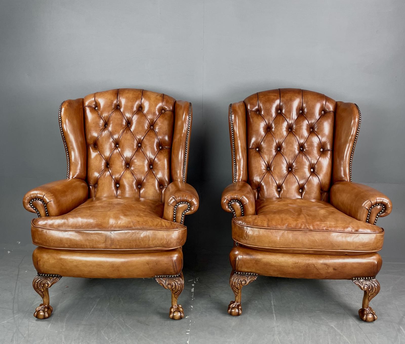 Antique Pair of Leather Wing Chairs (1 of 9)