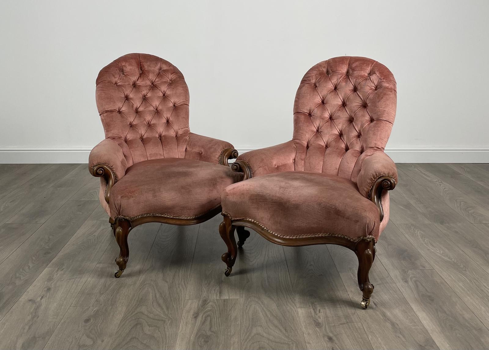Antique Pair of Victorian Button Back Armchairs in Mahogany (1 of 7)