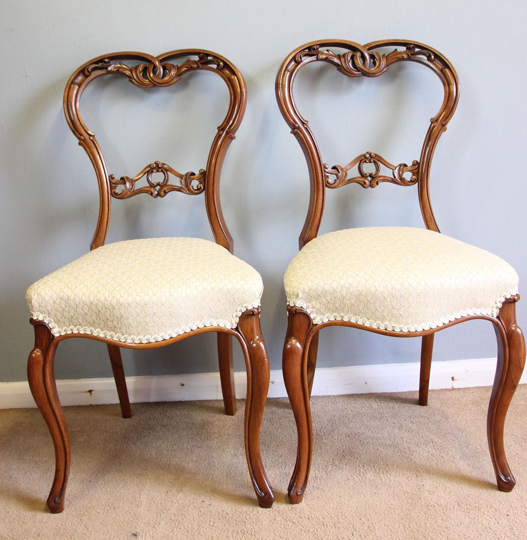 Antique Pair of Victorian Walnut Bedroom Side Chairs (1 of 11)