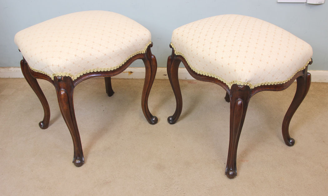 Antique Pair of Victorian Walnut Cabriole Leg Stools
