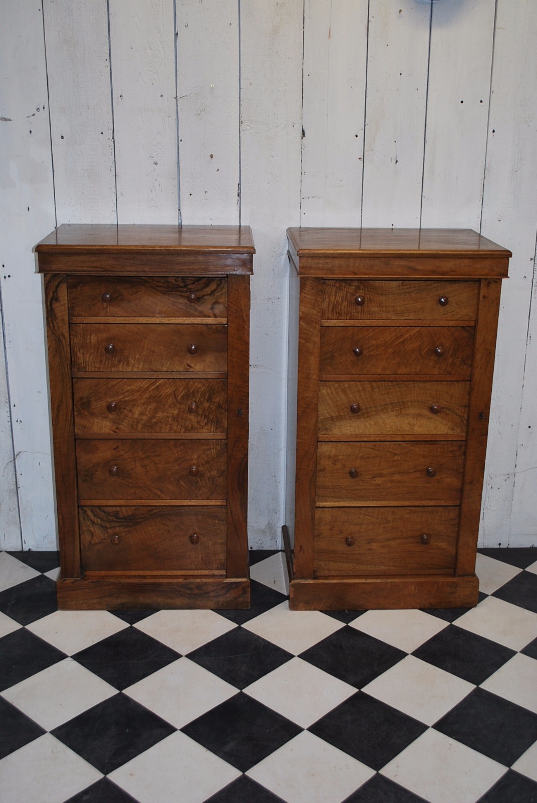 Antique Pair of Walnut Wellington Chests