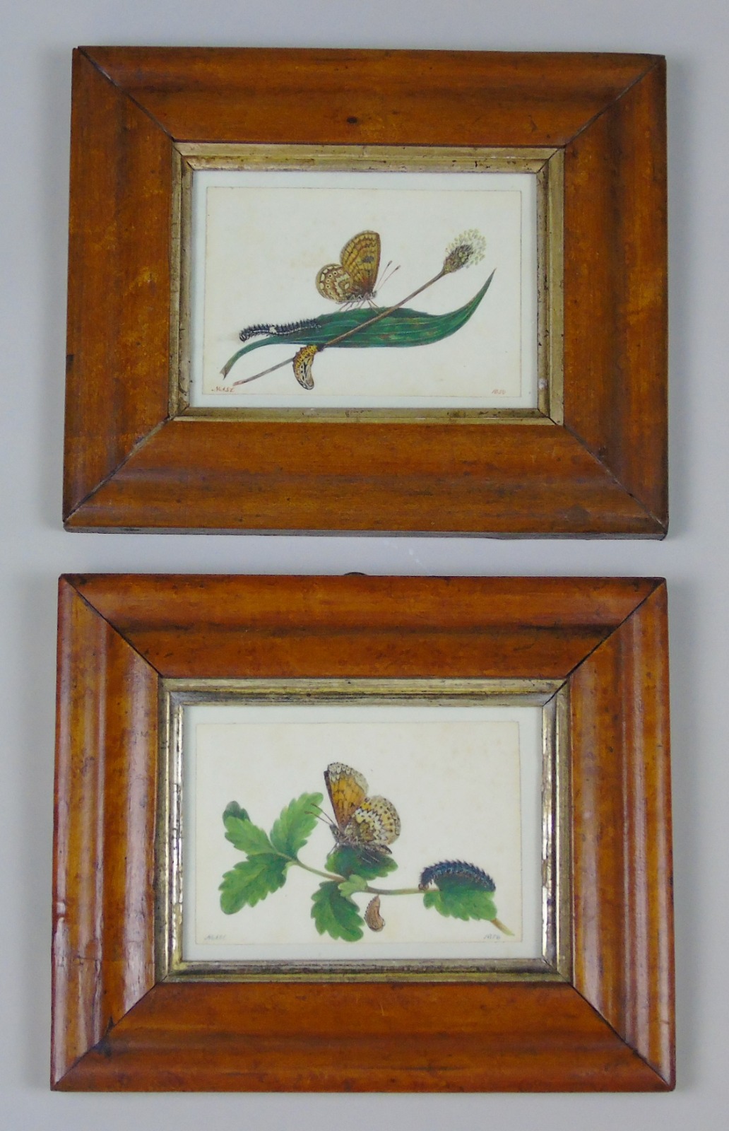 Antique Pair of Watercolours Paintings Butterflies and Pupae