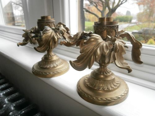 Antique Pair Ornate Brass Candlesticks c.1900