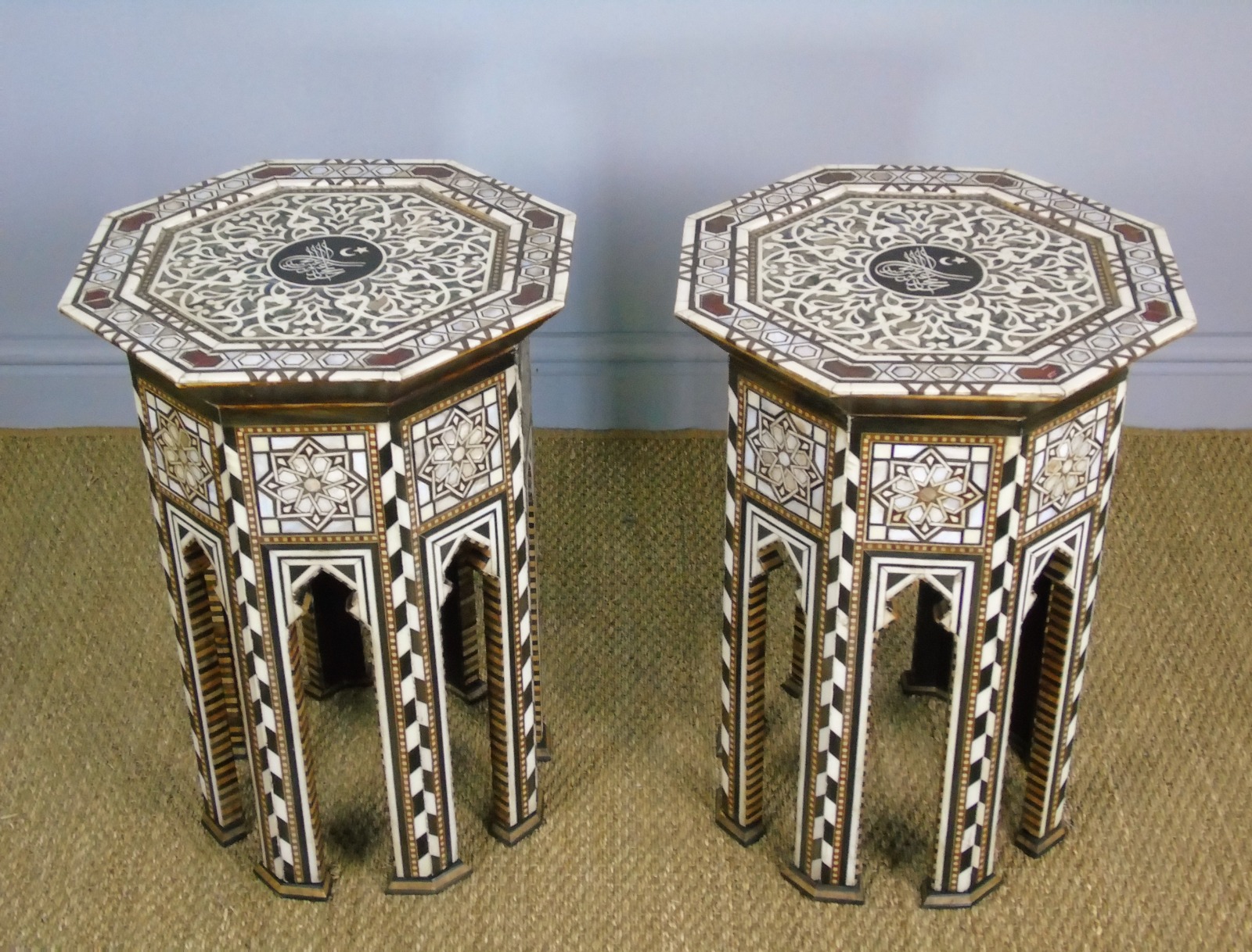 Antique Pair Syrian Mother of Pearl Inlaid Hardwood Tables (1 of 11)