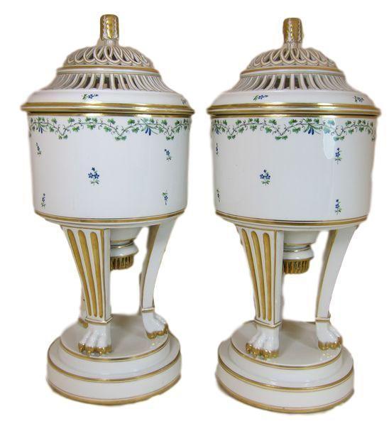 Antique Pair Vienna Porcelain Sprig Decorated Ice Pails