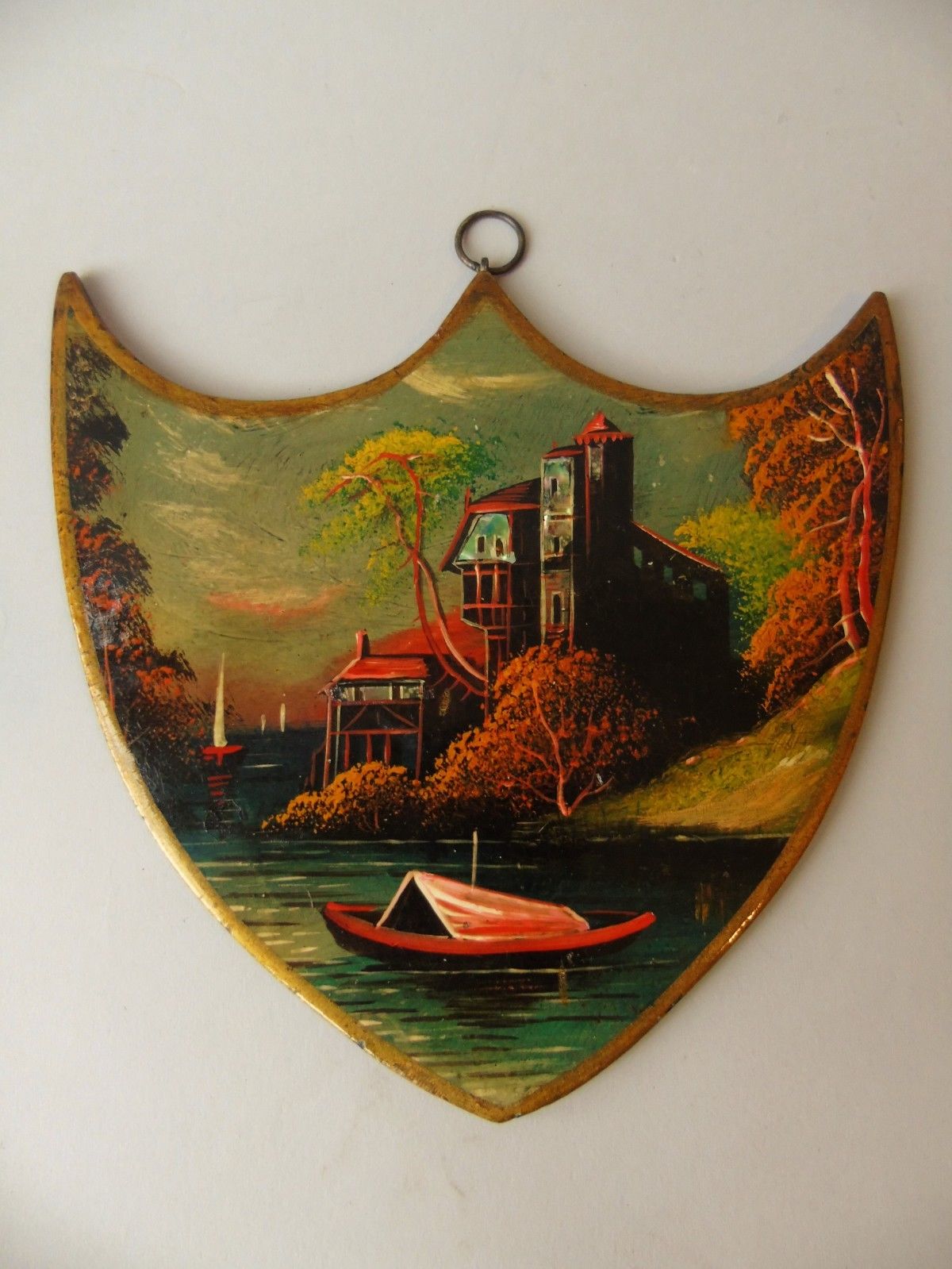 Antique Papier Mache Mother of Pearl Picture Shield (1 of 1)