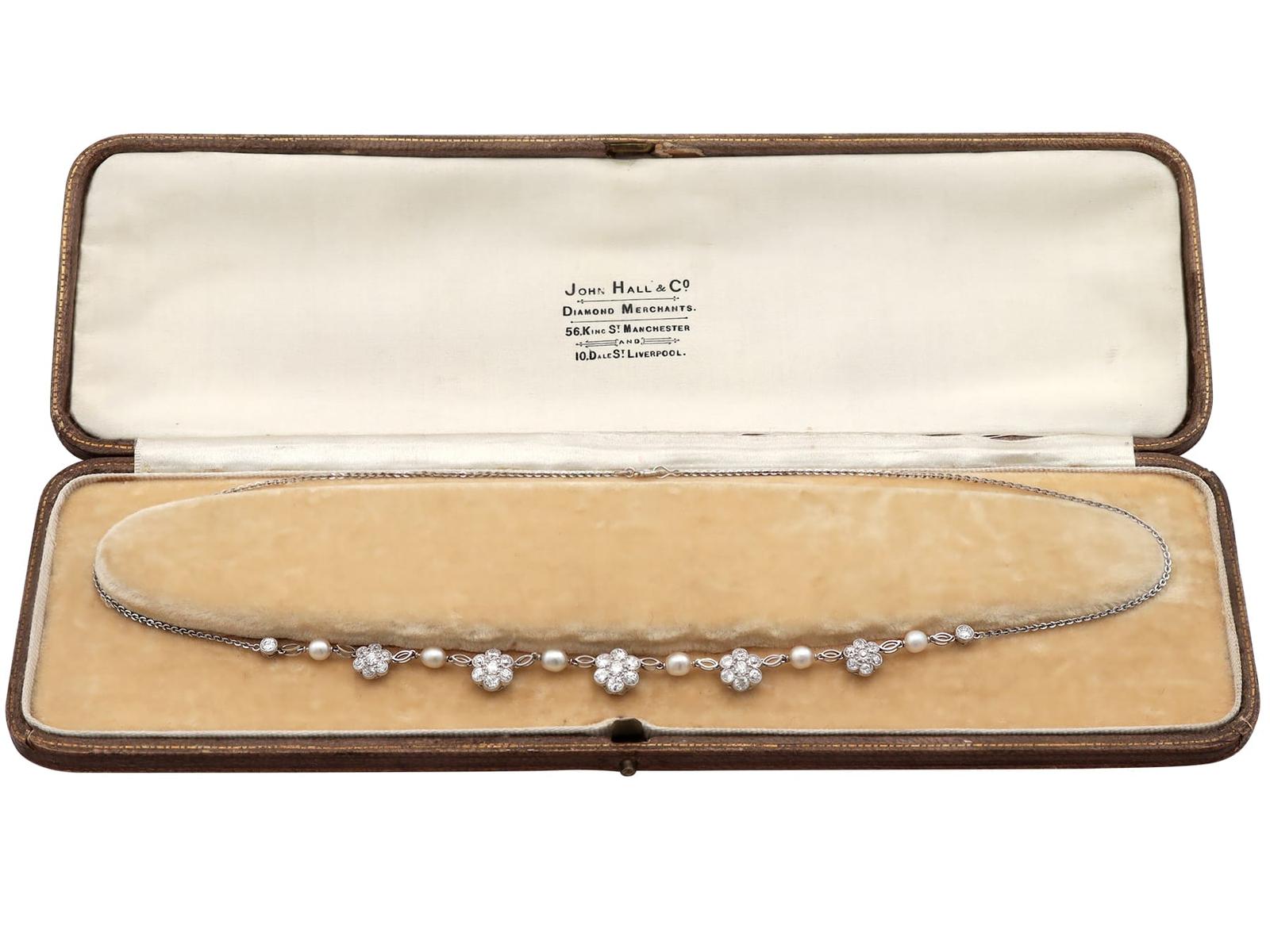 This Antique Pearl & 2.10ct Diamond Platinum Necklace c.1910 is located in Tyne and Wear, United Kingdom