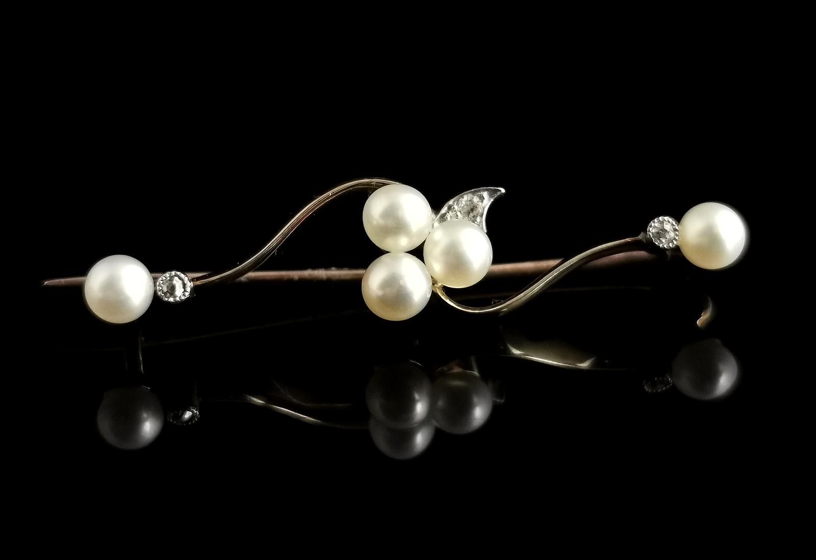 Antique Pearl and Diamond Shamrock Brooch, 9ct Gold and Silver