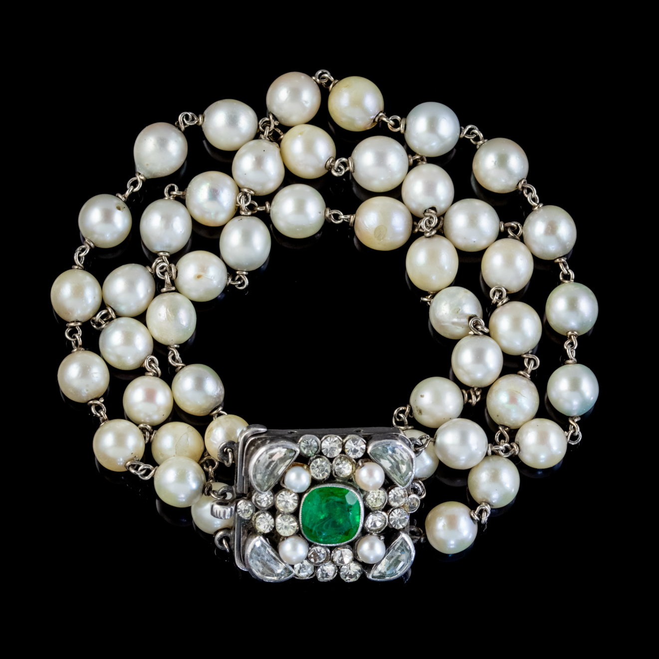 Antique Pearl Bracelet Green Paste Silver Clasp Austro Hungarian c.1890