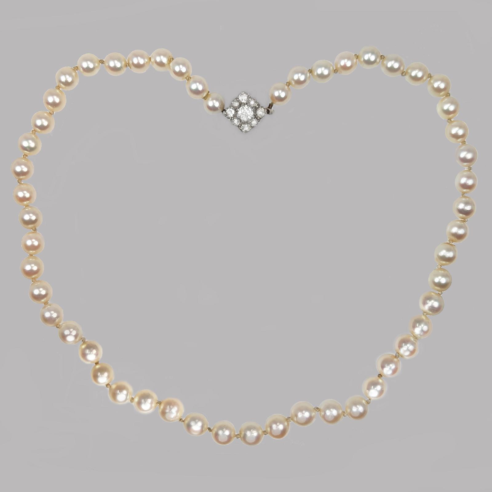 Antique Pearl Necklace with Diamond Clasp Plus Gem Lab Certificate Single Strand