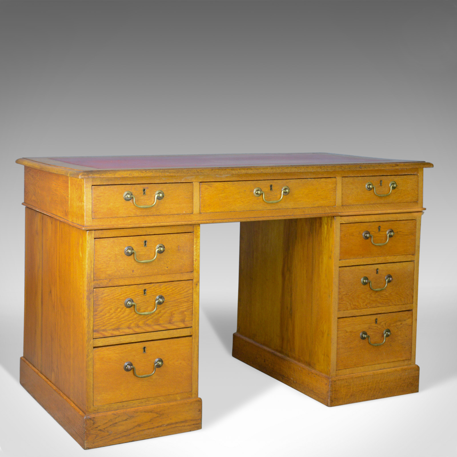 Antique Pedestal Desk, English, Victorian, Golden Oak, Single, Leather c.1890 (1 of 1)