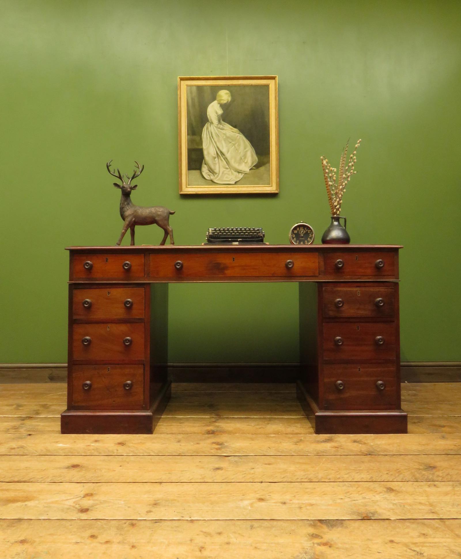 Antique Pedestal Partners Desk with Red Leather top and dummy drawers