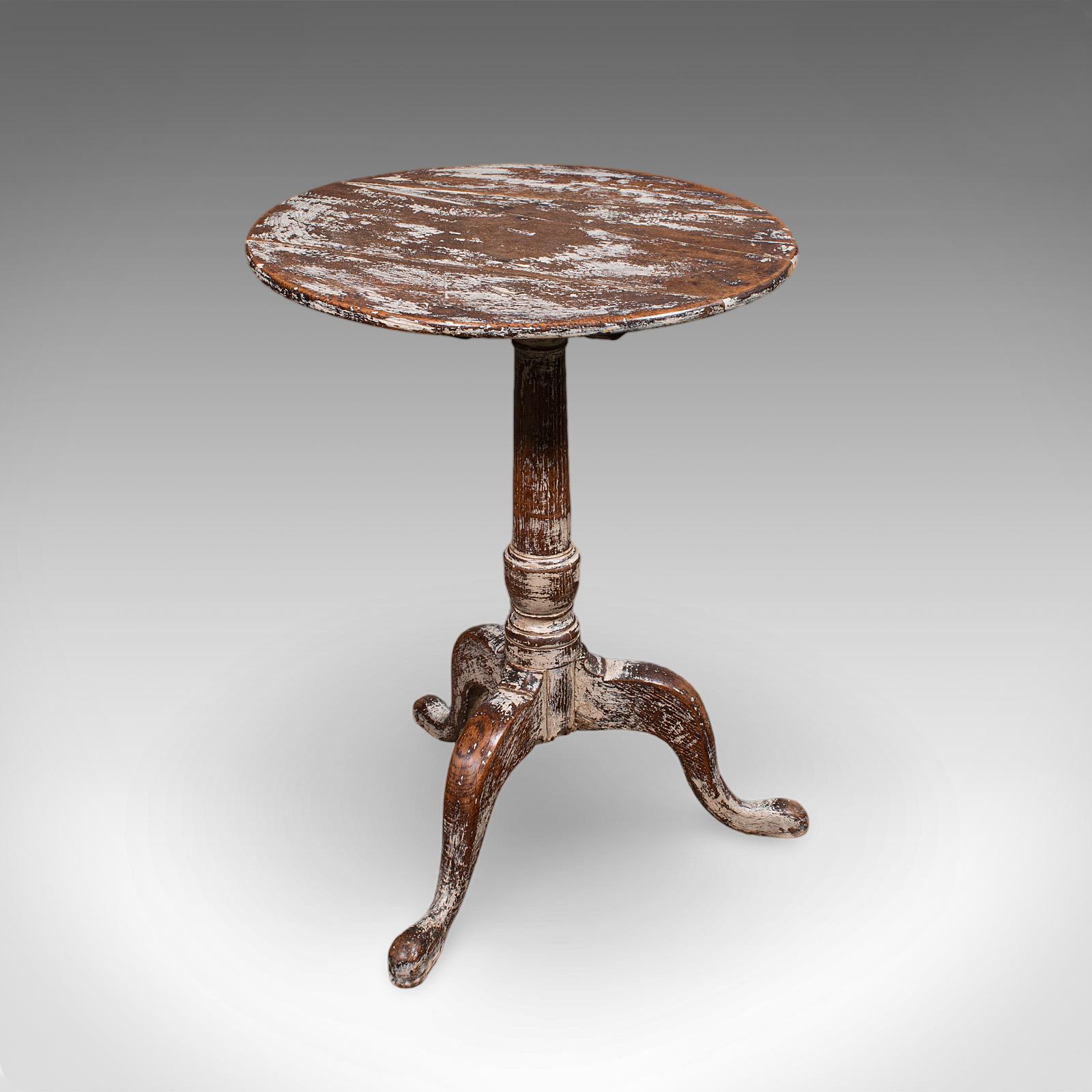 This is an antique pedestal table. An English, painted oak side or lamp table, dating to the Georgian period, circa 1750.