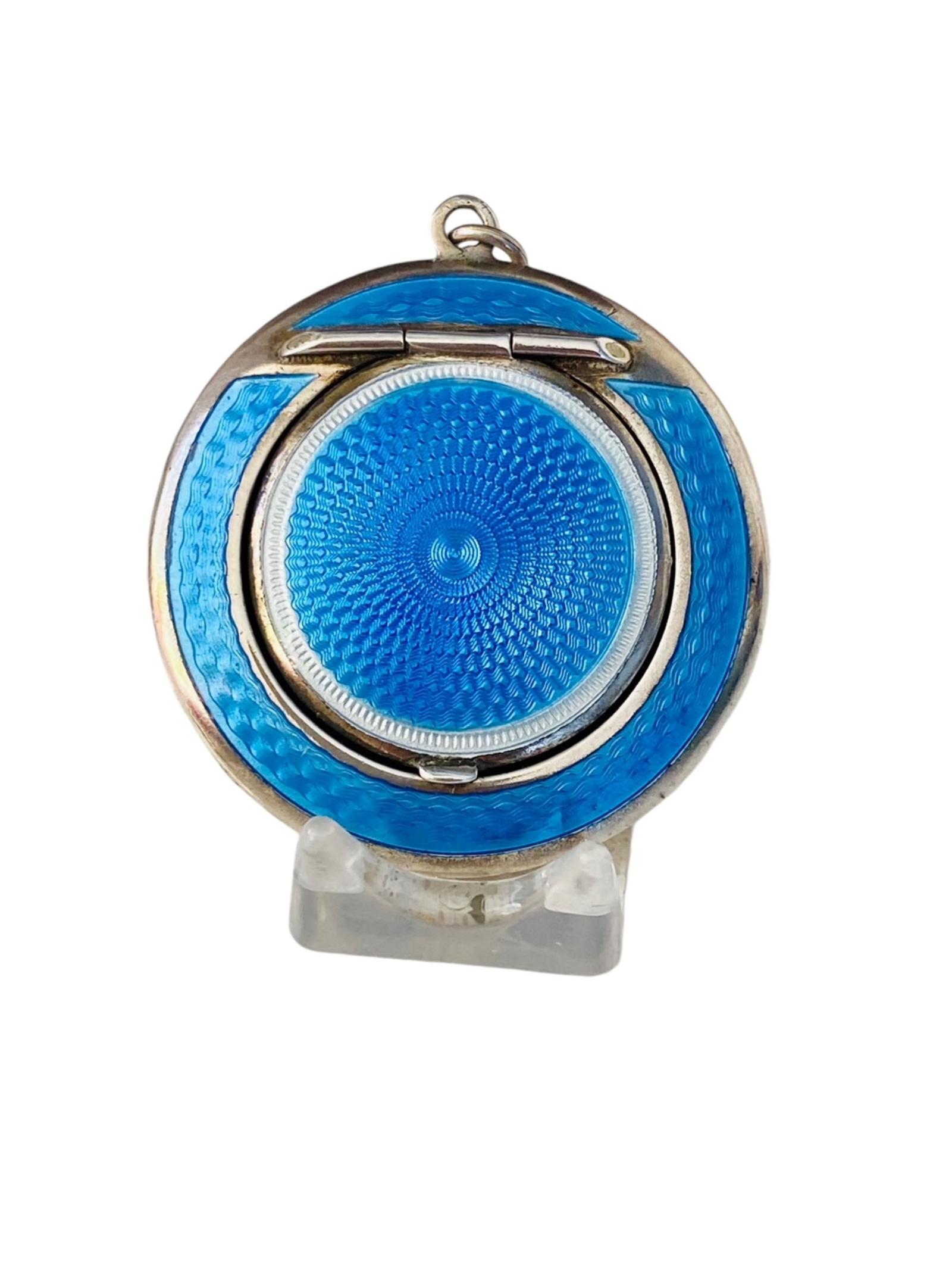 Antique Pendant Powder Compact Guilloche Enamel Sterling Silver Birmingham 1921