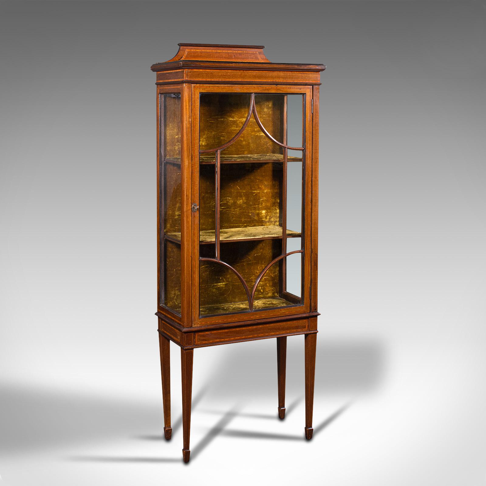 Antique Pier Cabinet On Stand, English, Walnut, Glazed Display Case, Edwardian
