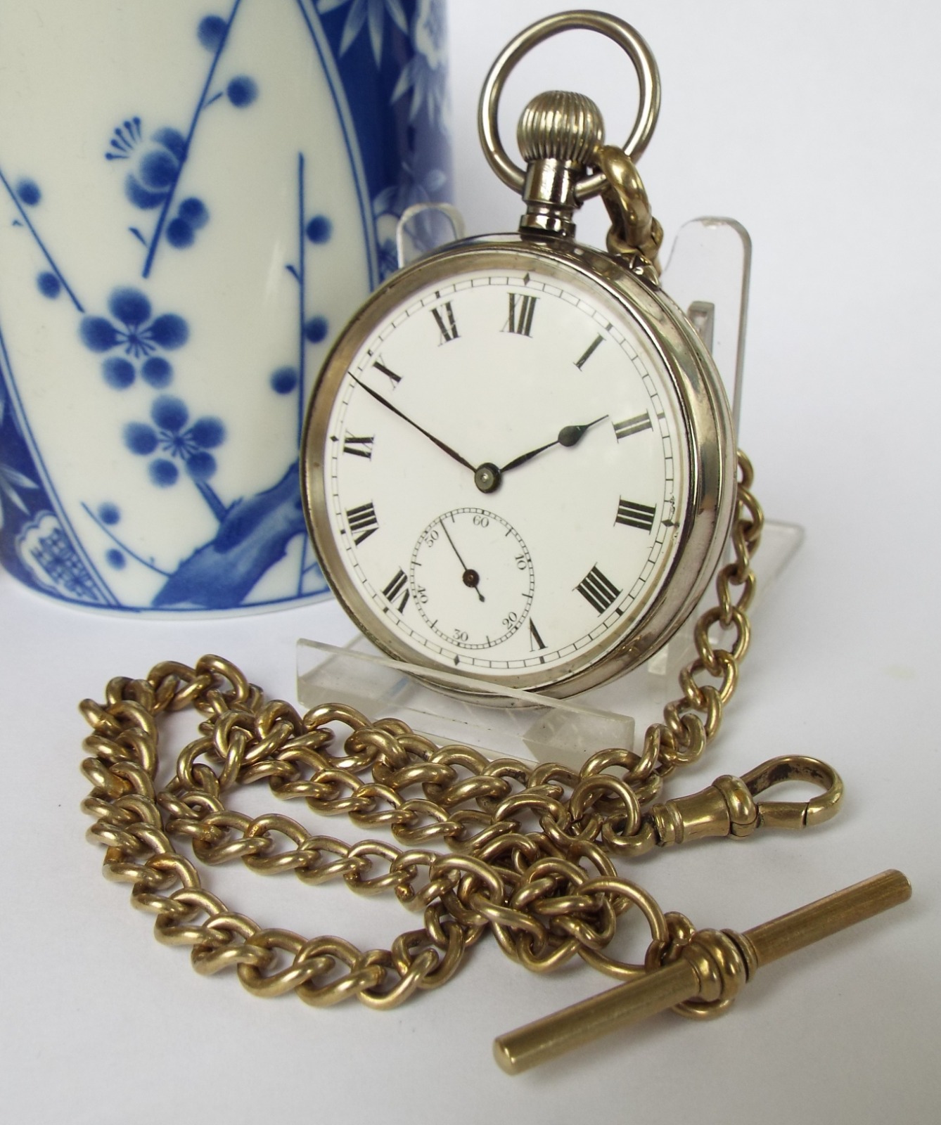 Antique Pin-Set Swiss Pocket Watch & Chain c.1910