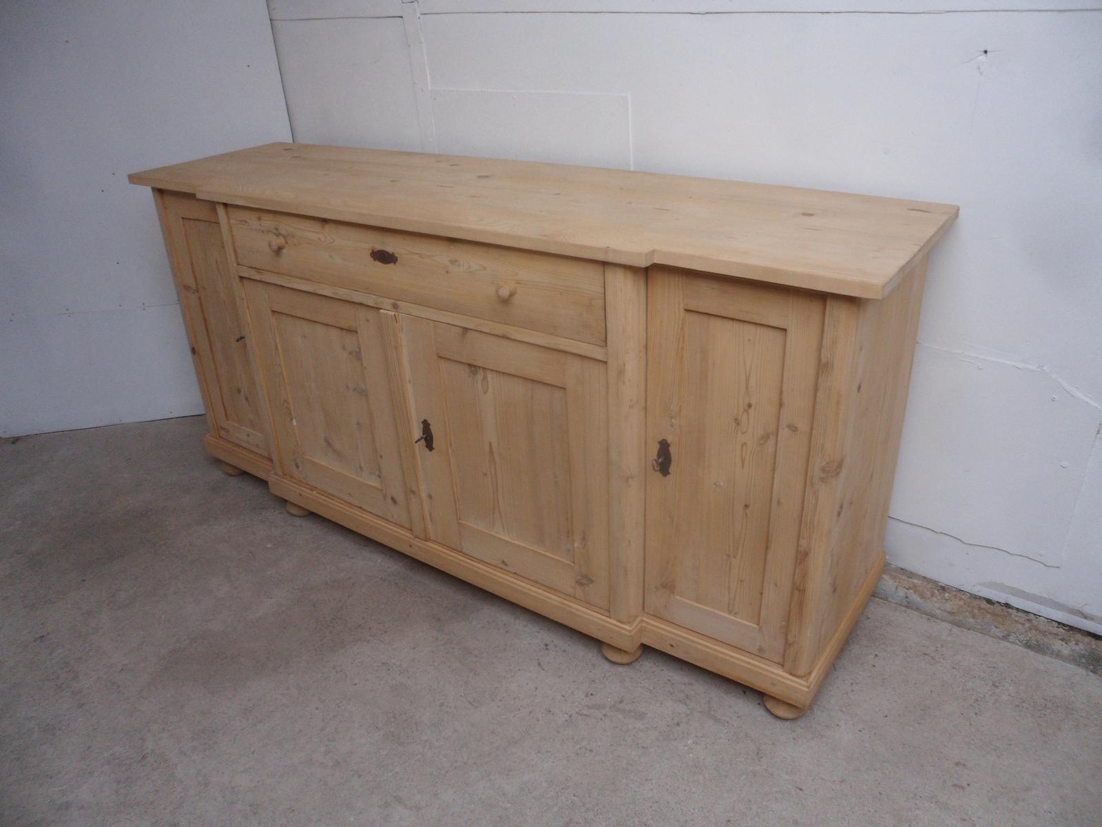 Antique Pine 4 Door 1 Drawer Breakfront Sideboard / TV Stand to wax / paint