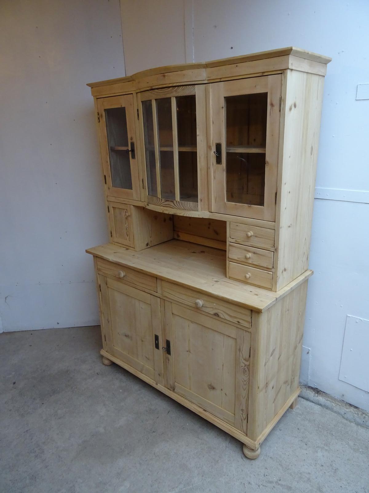 Antique Pine Art Deco 3 Door Bow Front Kitchen Dresser to wax / paint