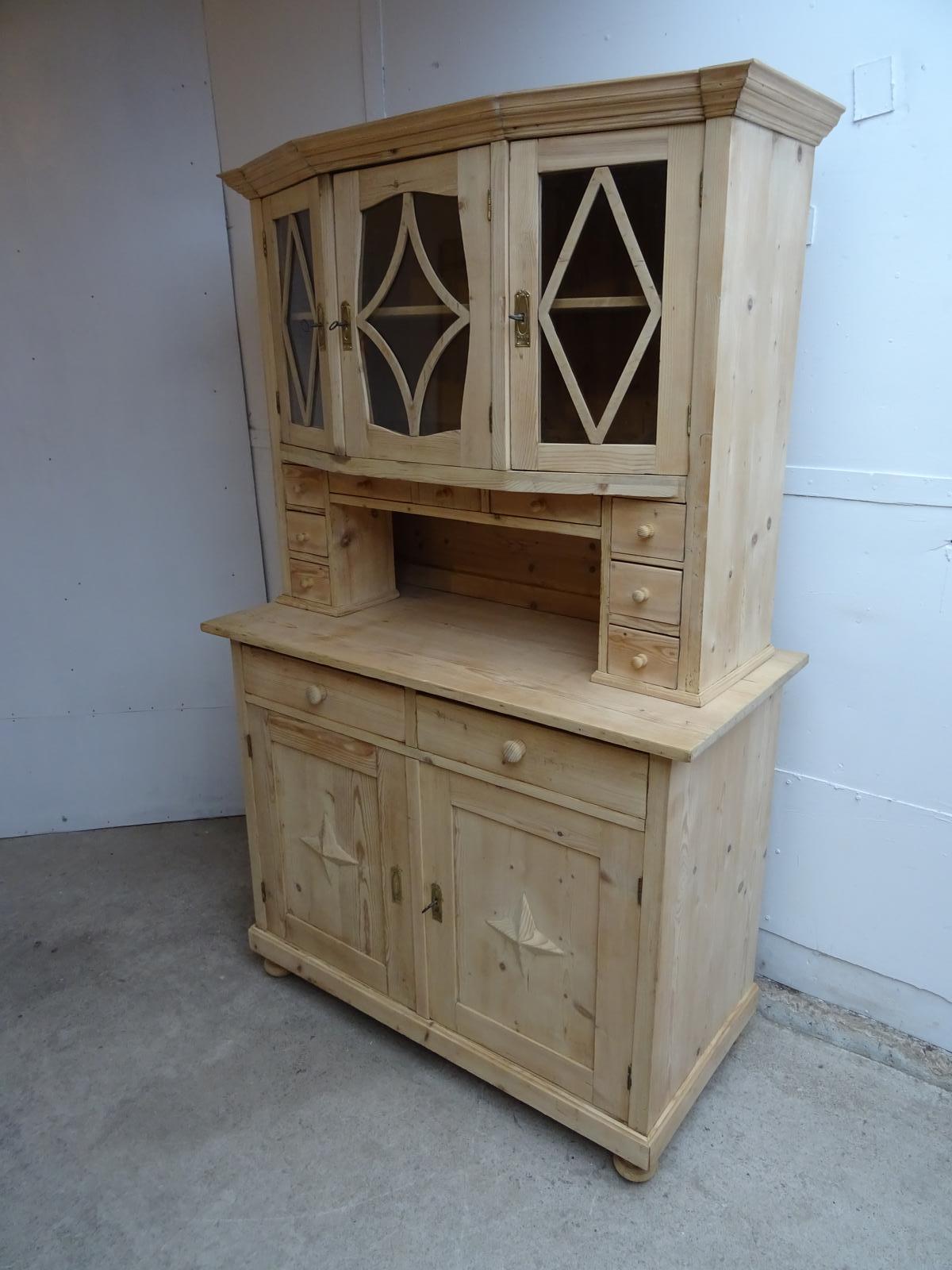 Antique Pine Art Deco 3 Door Diamond Kitchen Dresser to wax /paint