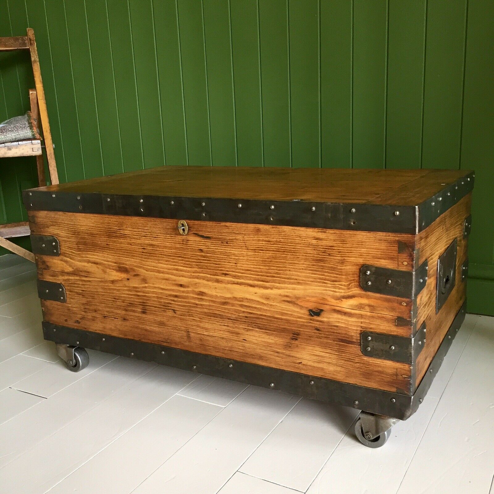 Antique Pine Chest Old Victorian Military Campaign Boer War Trunk + Key