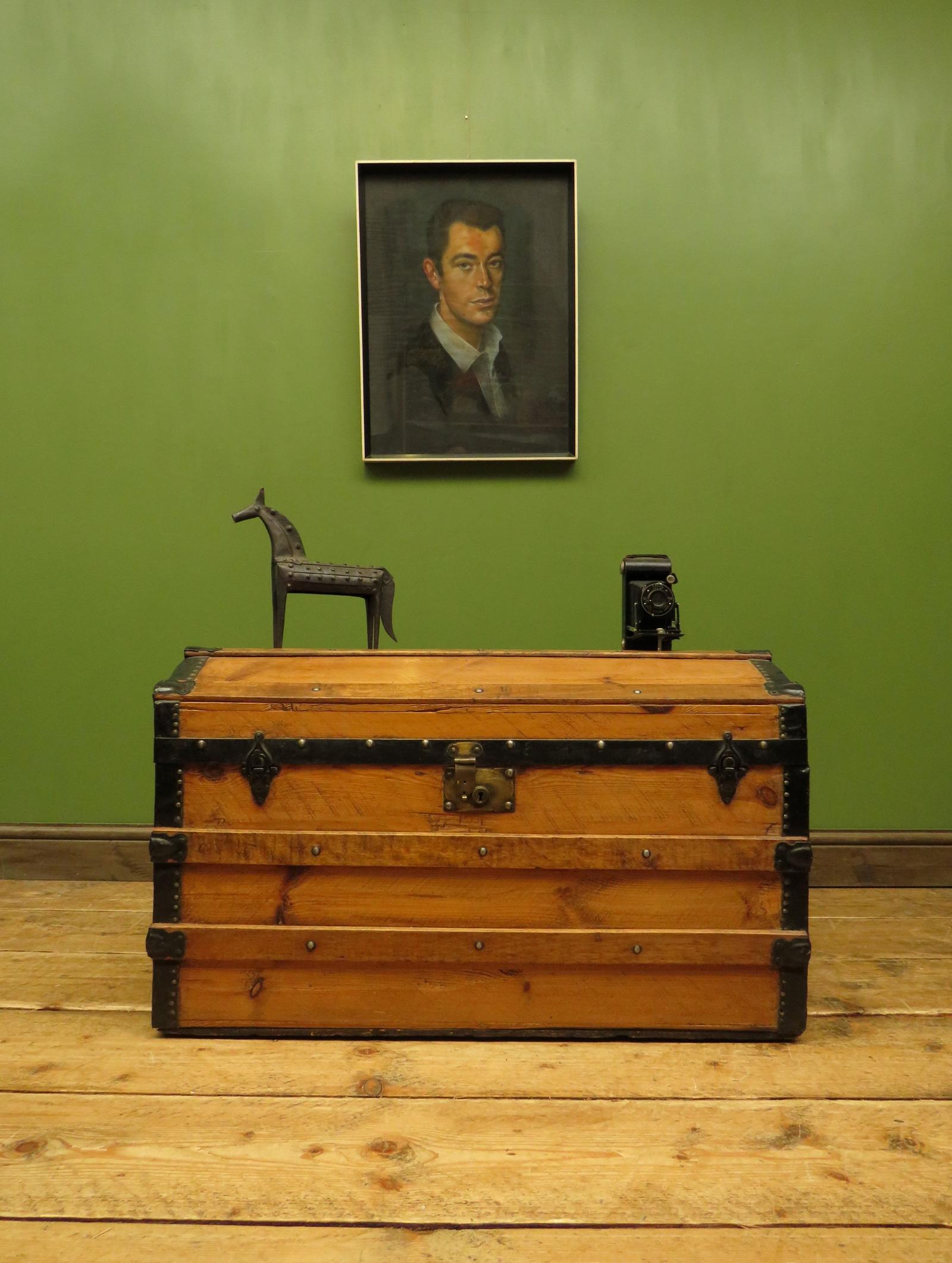 Antique Pine Dome Topped Pirates Chest Storage Trunk