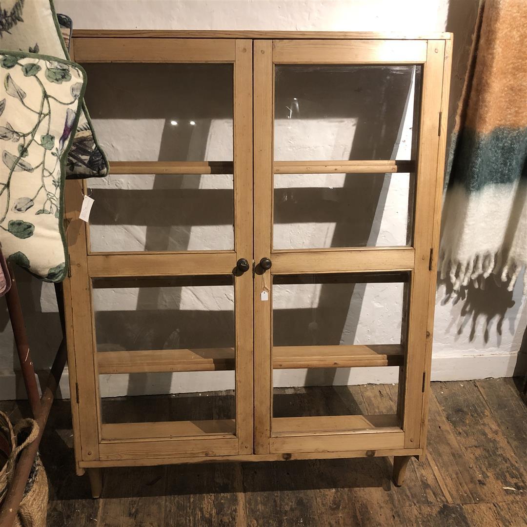 Antique Pine Glazed Display Wall Cabinet