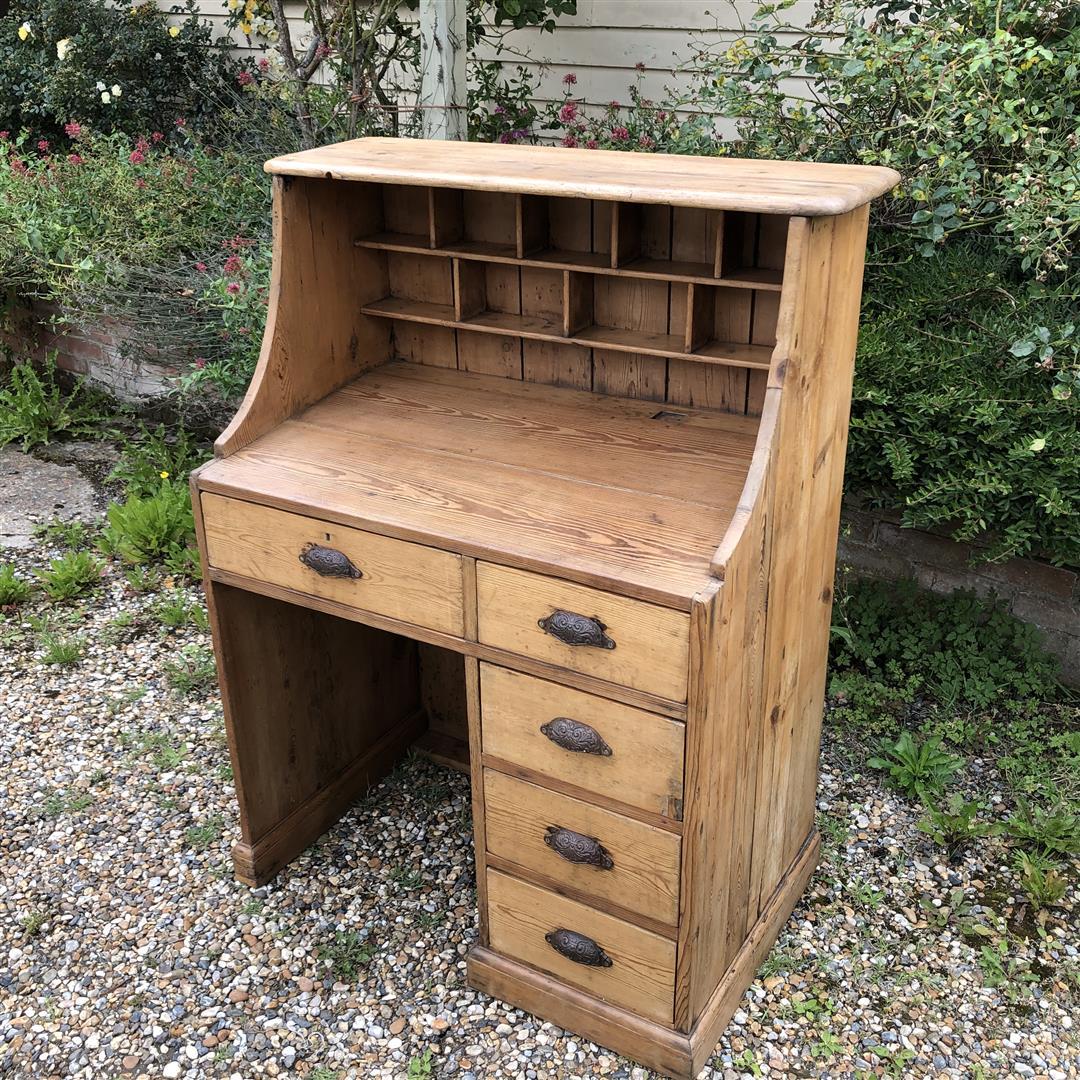 Antique Pine Kneehole Desk with Pigeonholes Above 1800s