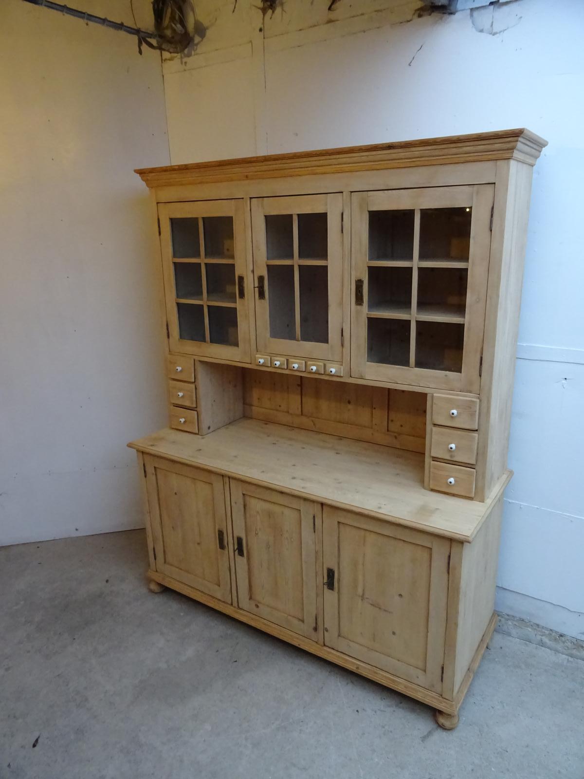 Antique Pine Large 3 Door 11 Spice Drawer Kitchen Dresser to wax / paint