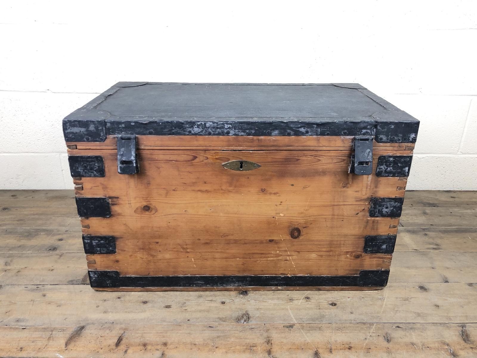 Antique Pine Metal Bound Trunk with Tin Lining (1 of 19)