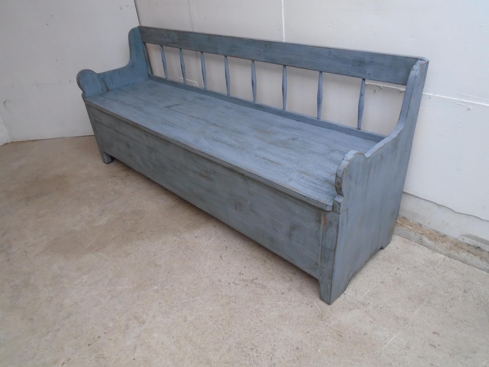 Antique Pine Painted Blue / Grey Victorian Box Settle / Hall Bench