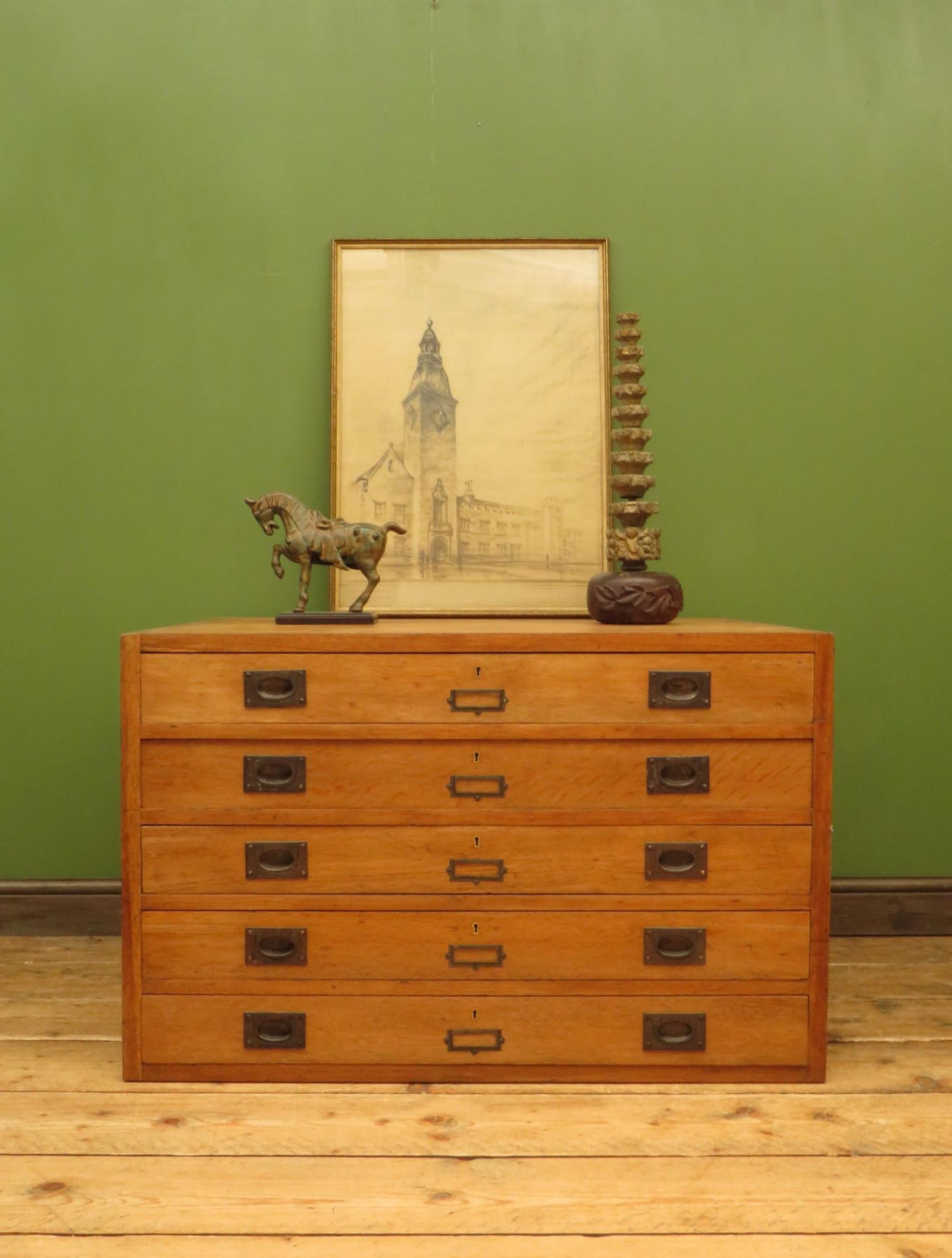 Antique Pine Plan Chest with Military Campaign Brass Handles