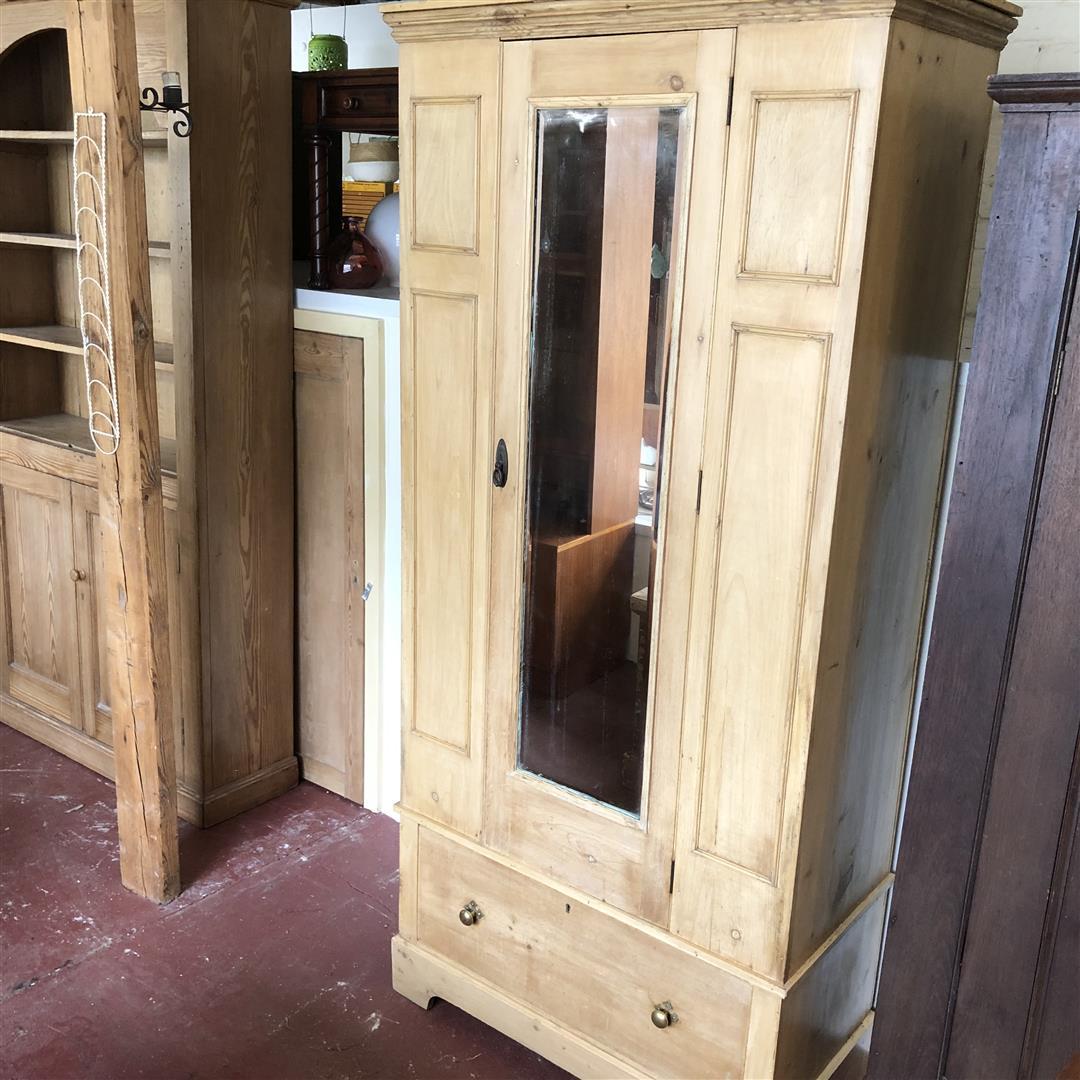 Antique Pine Single Wardrobe with Mirror Door (1 of 12)