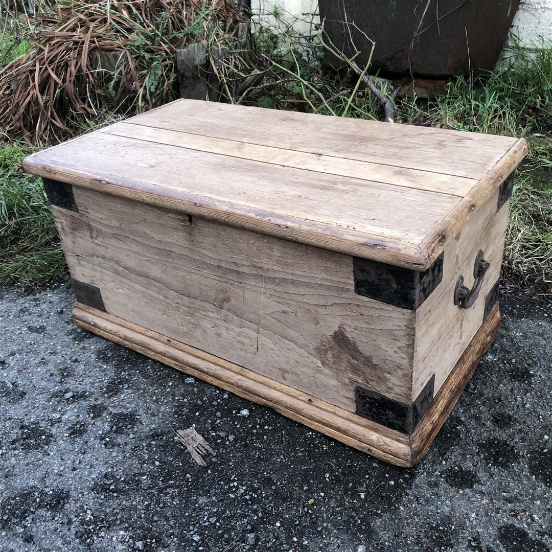 Antique Pine Steel Bound Box 1920s (1 of 8)